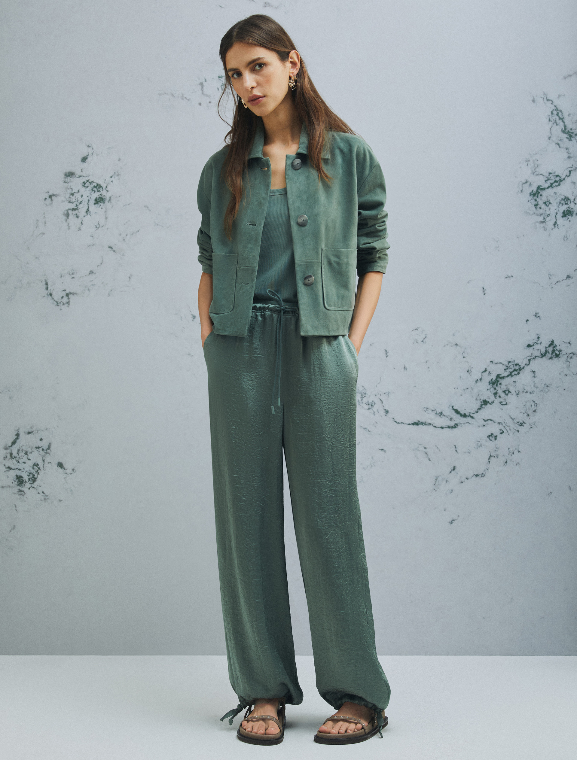 Crinkle twill joggers - GREEN