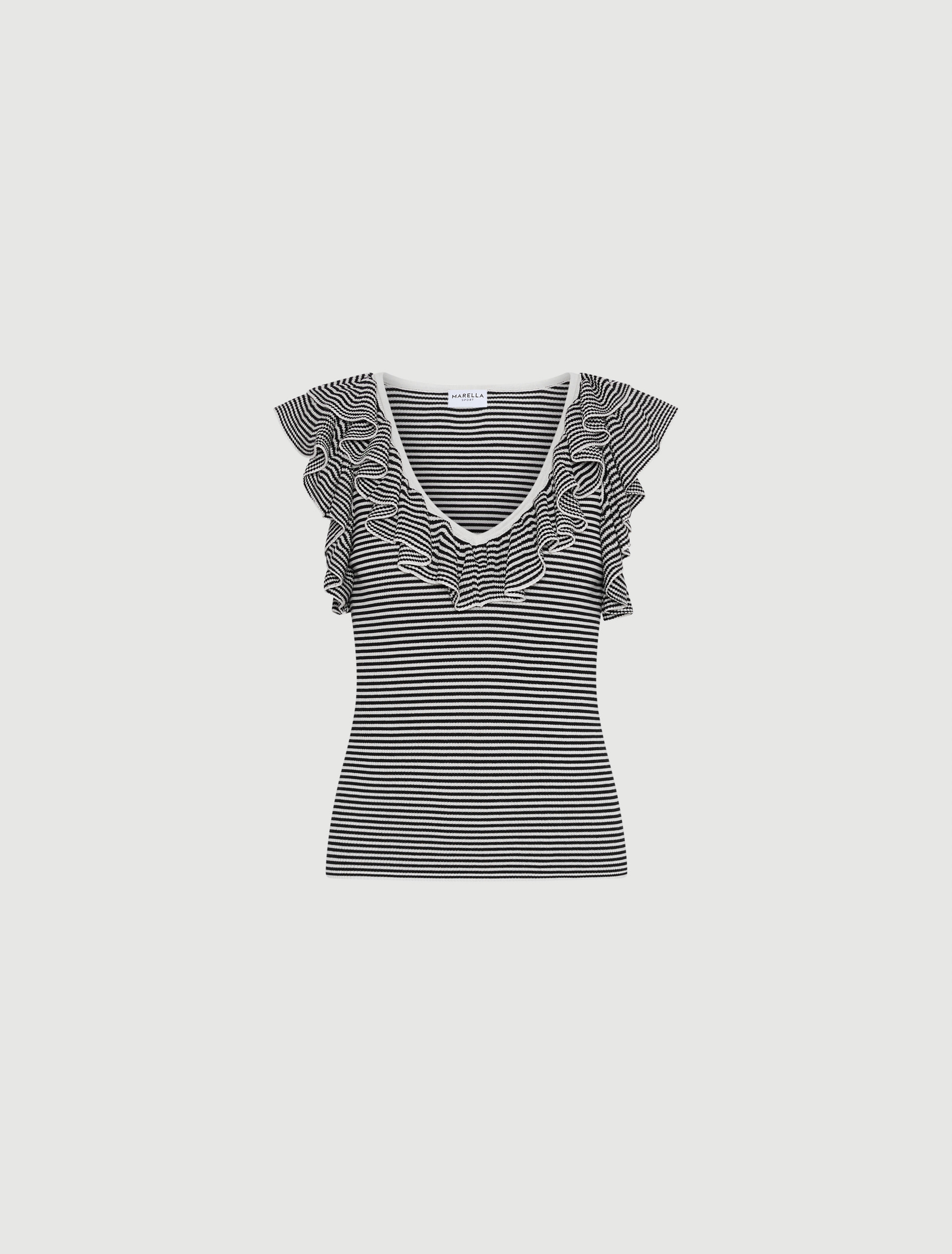 This ultra-feminine sleeveless top boasts neckline and shoulder-accentuating ruffle detail. Add jeans and ballet flats for an easy chic outfit to be replicated, time and time again.