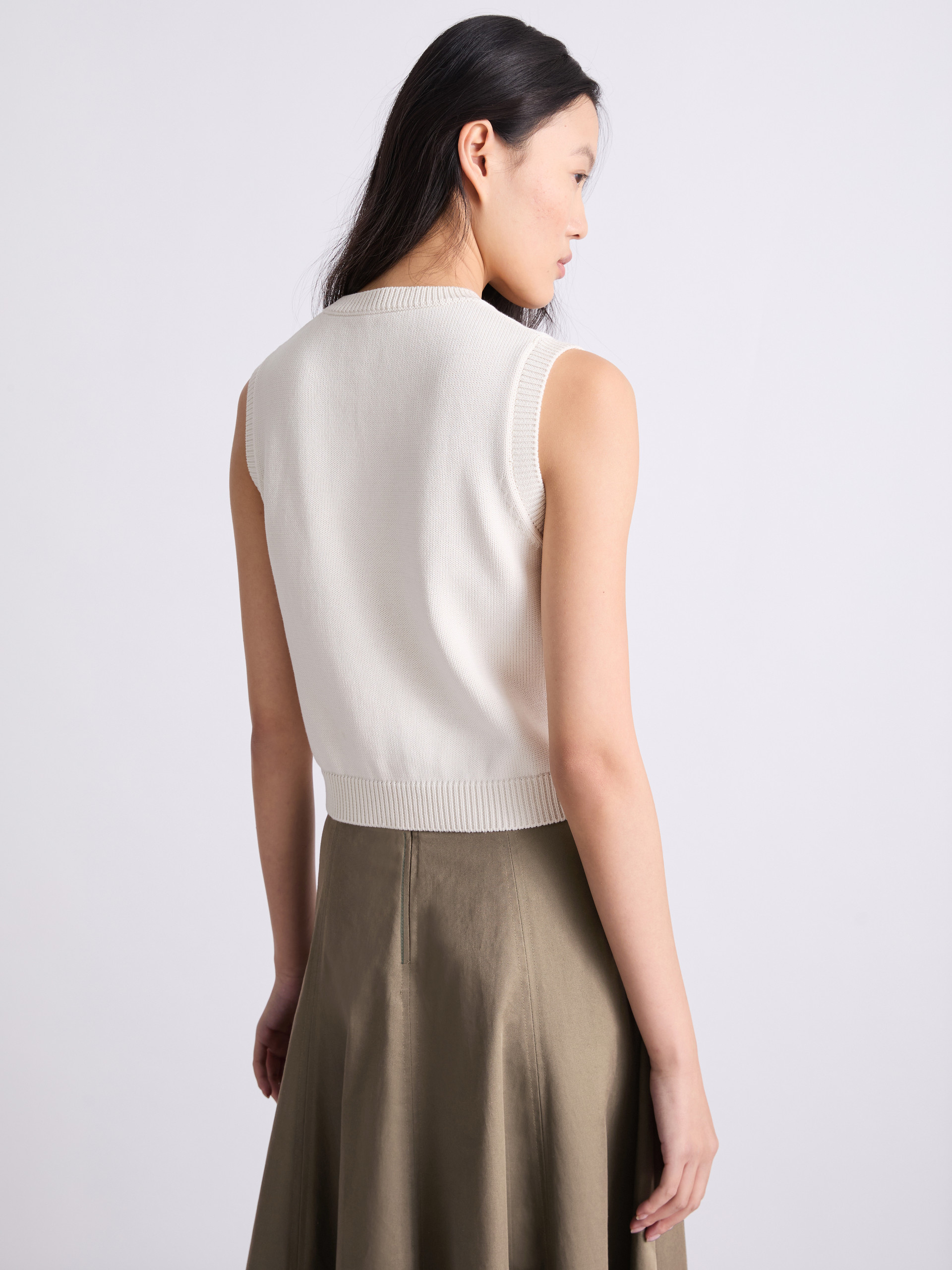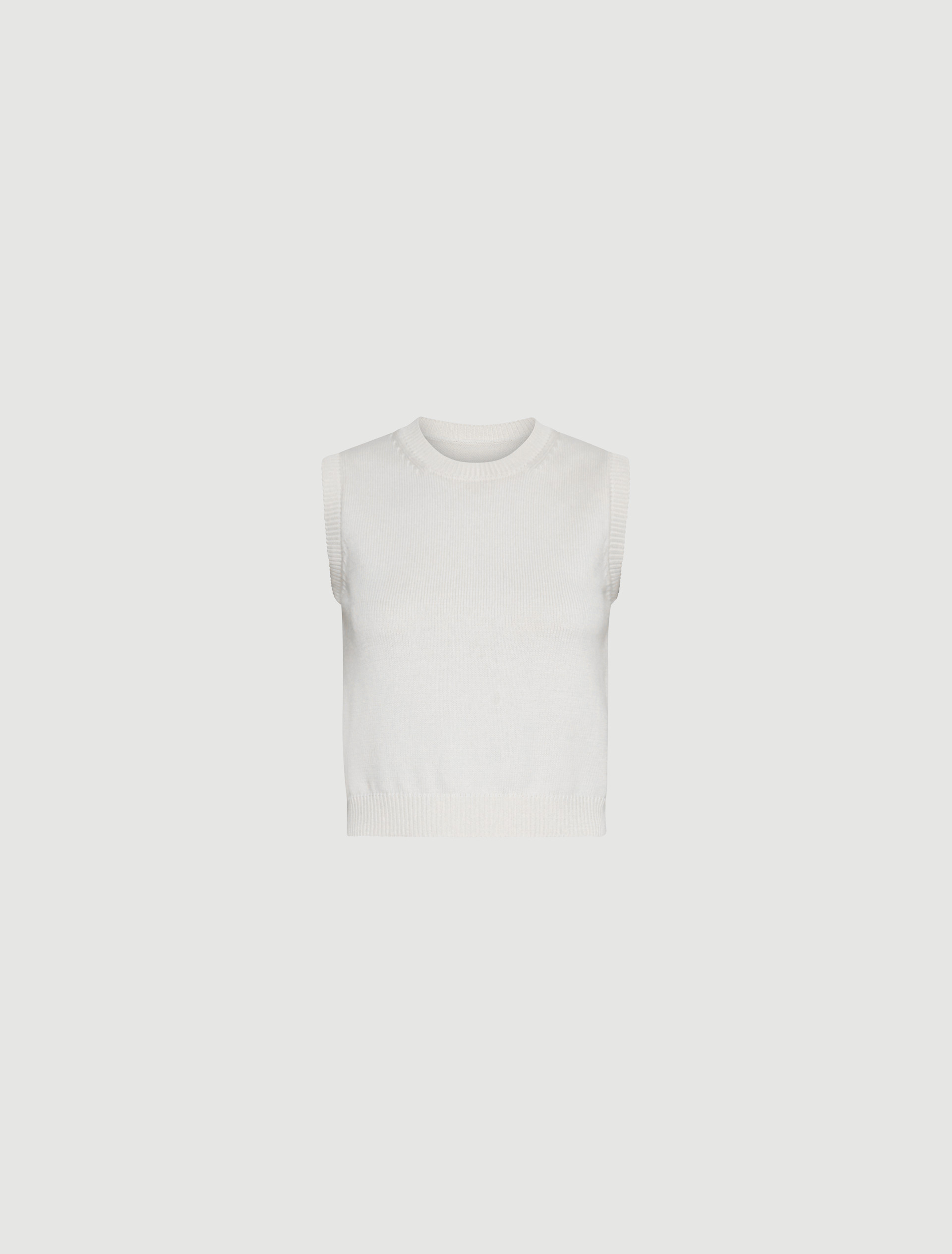 Fine rib-knit detailing on the neckline, hem and armholes